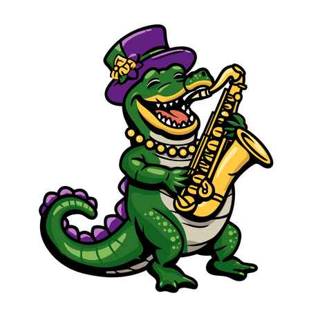 Mardi Gras Alligator Playing Jazz Saxophone PNG Sublimation