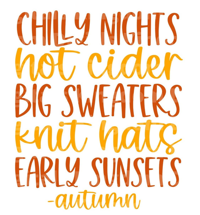 Chilly nights Hot cider Big sweaters Knit hats Early sunsets - Autumn SVG Cut File