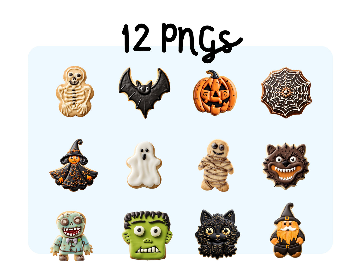 - Transparent Background: Effortlessly integrate these clipart cookies into your Halloween projects with their transparent backgrounds.