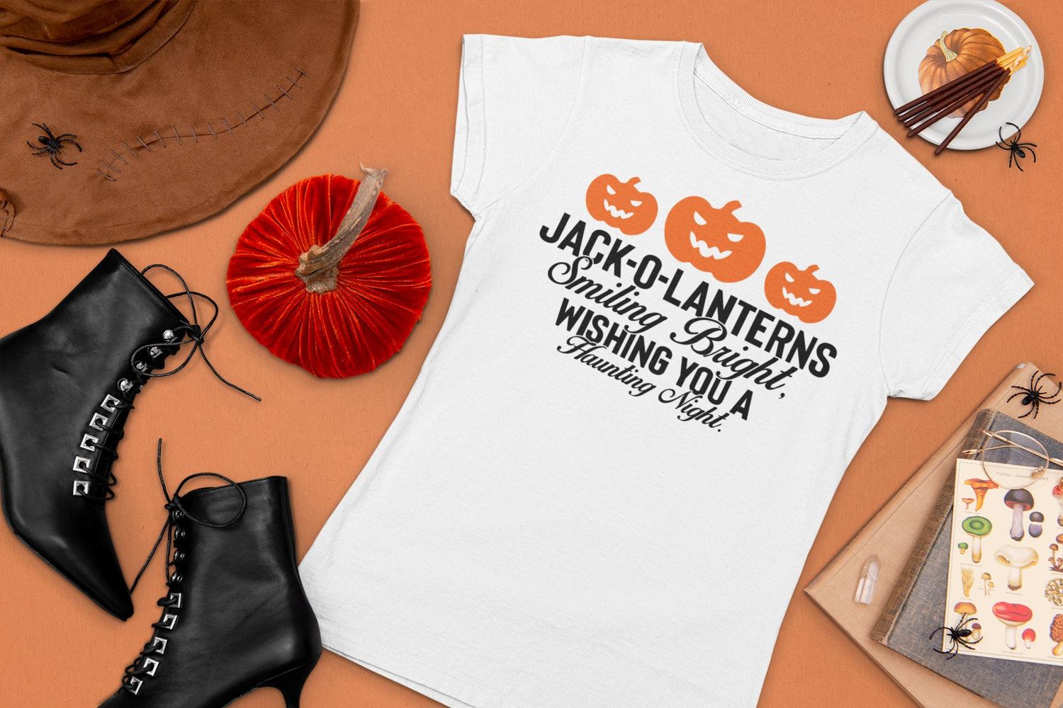 Jack-o-lanterns smiling bright, wishing you a haunting night SVG Cut File
